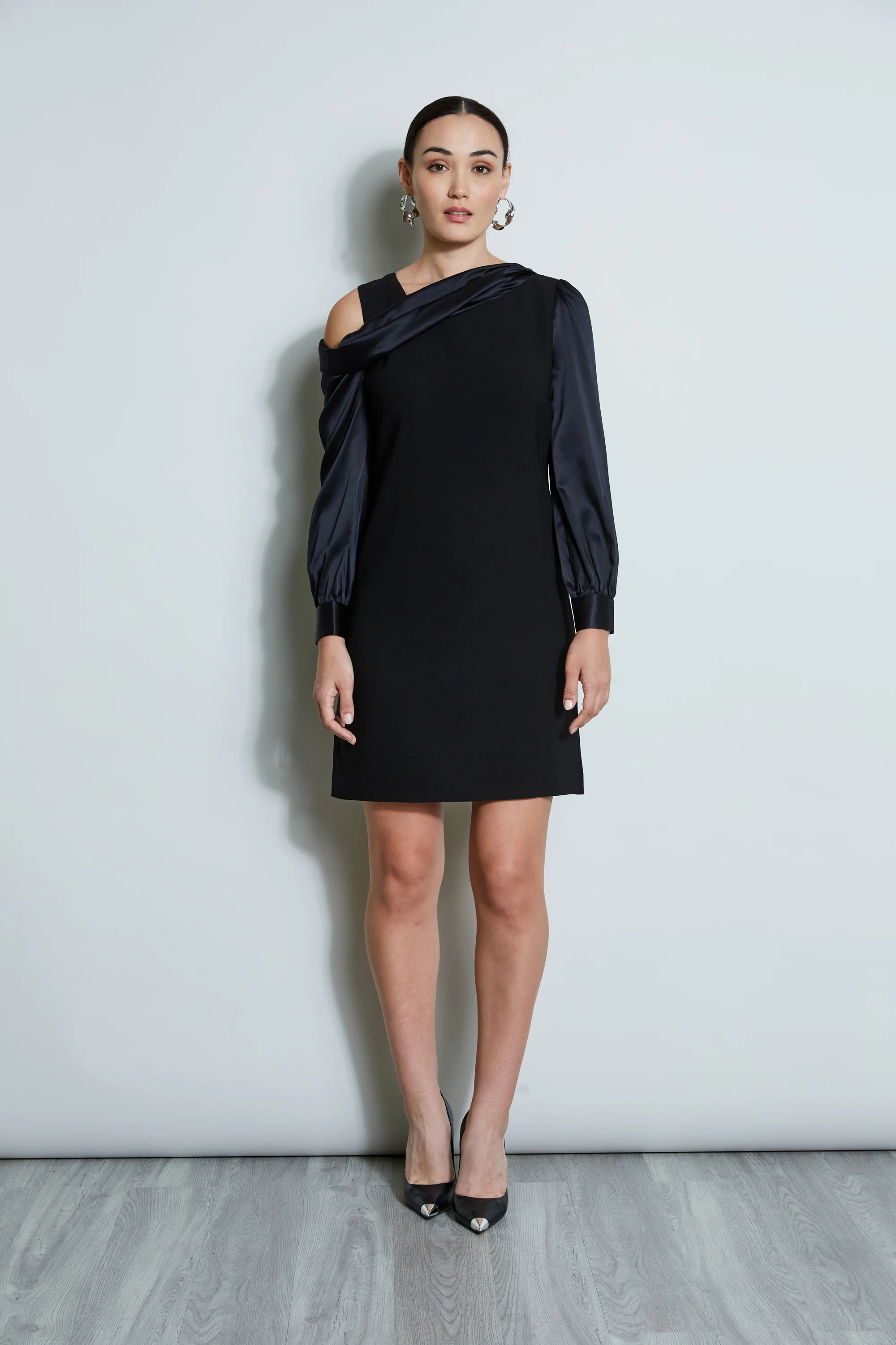 Draped Satin Shoulder Dress