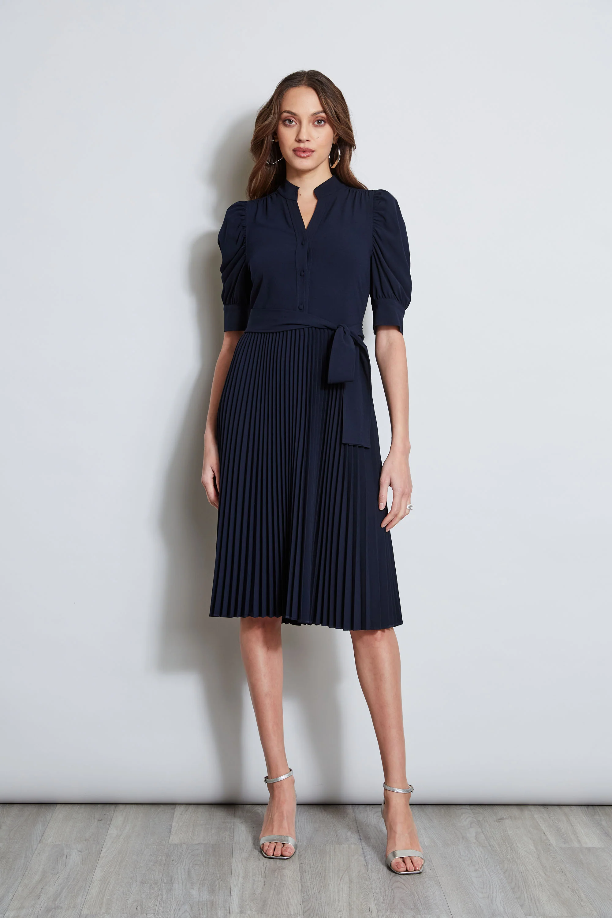 Pleated Ruched Sleeve Dress