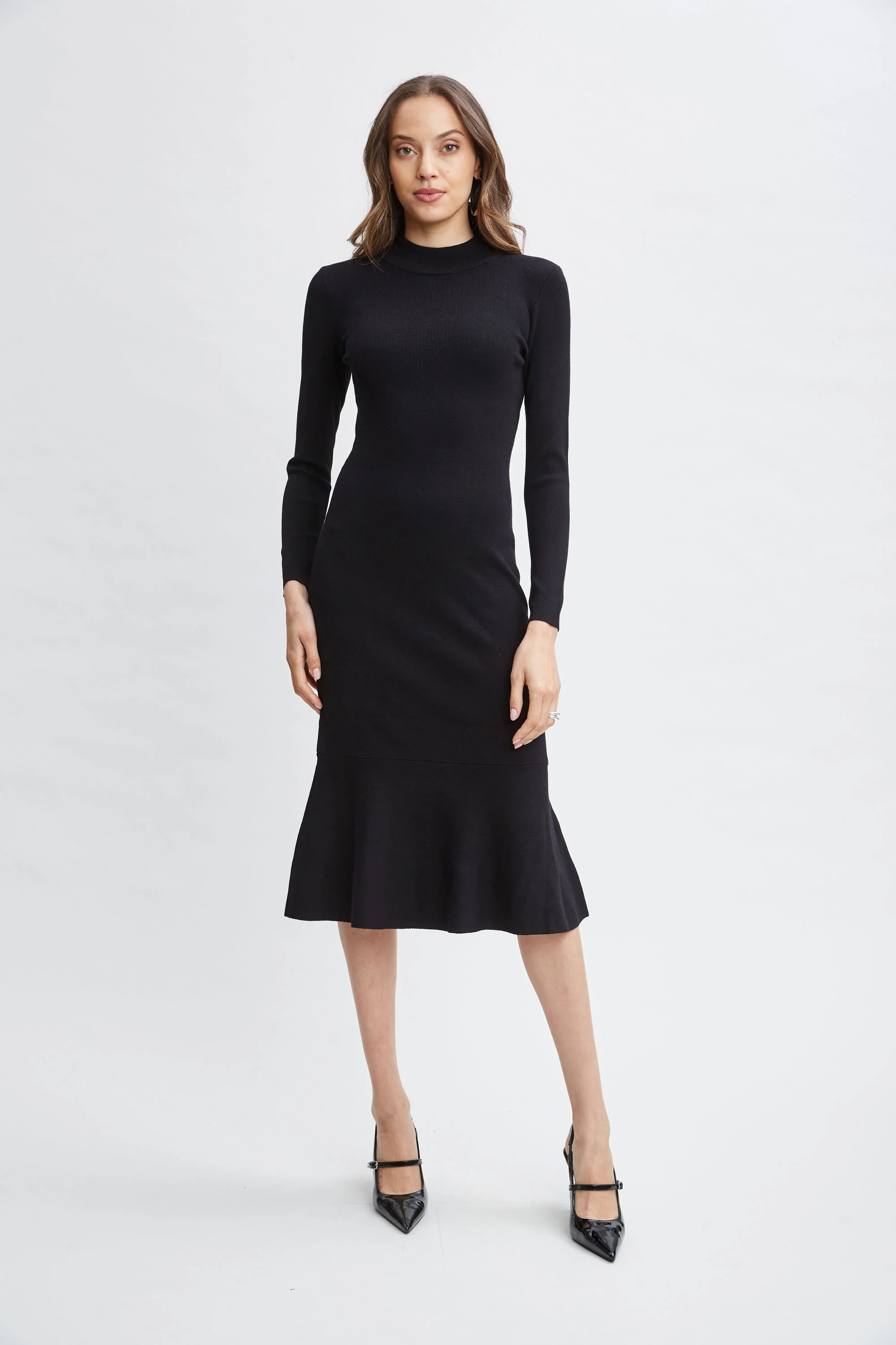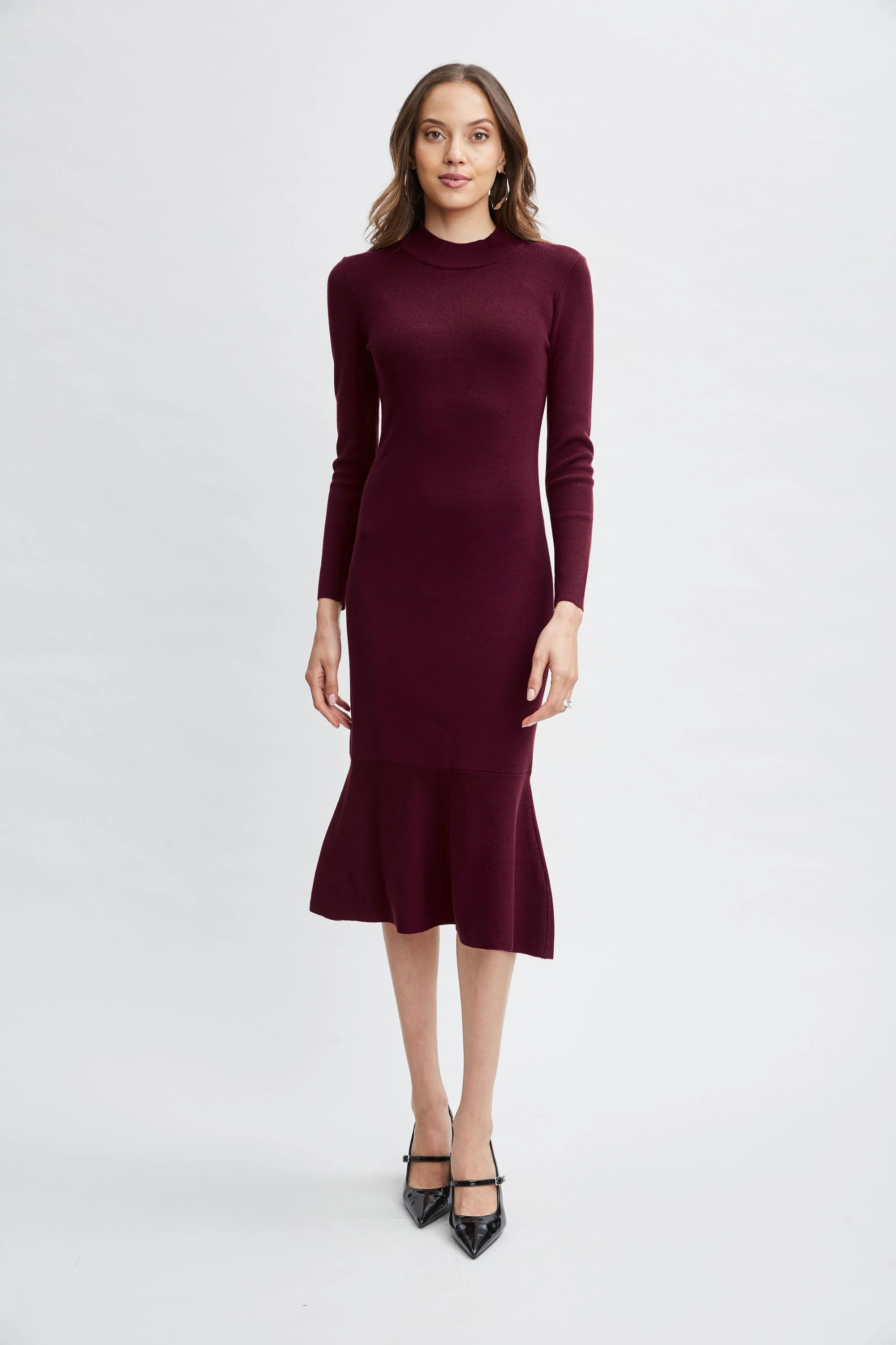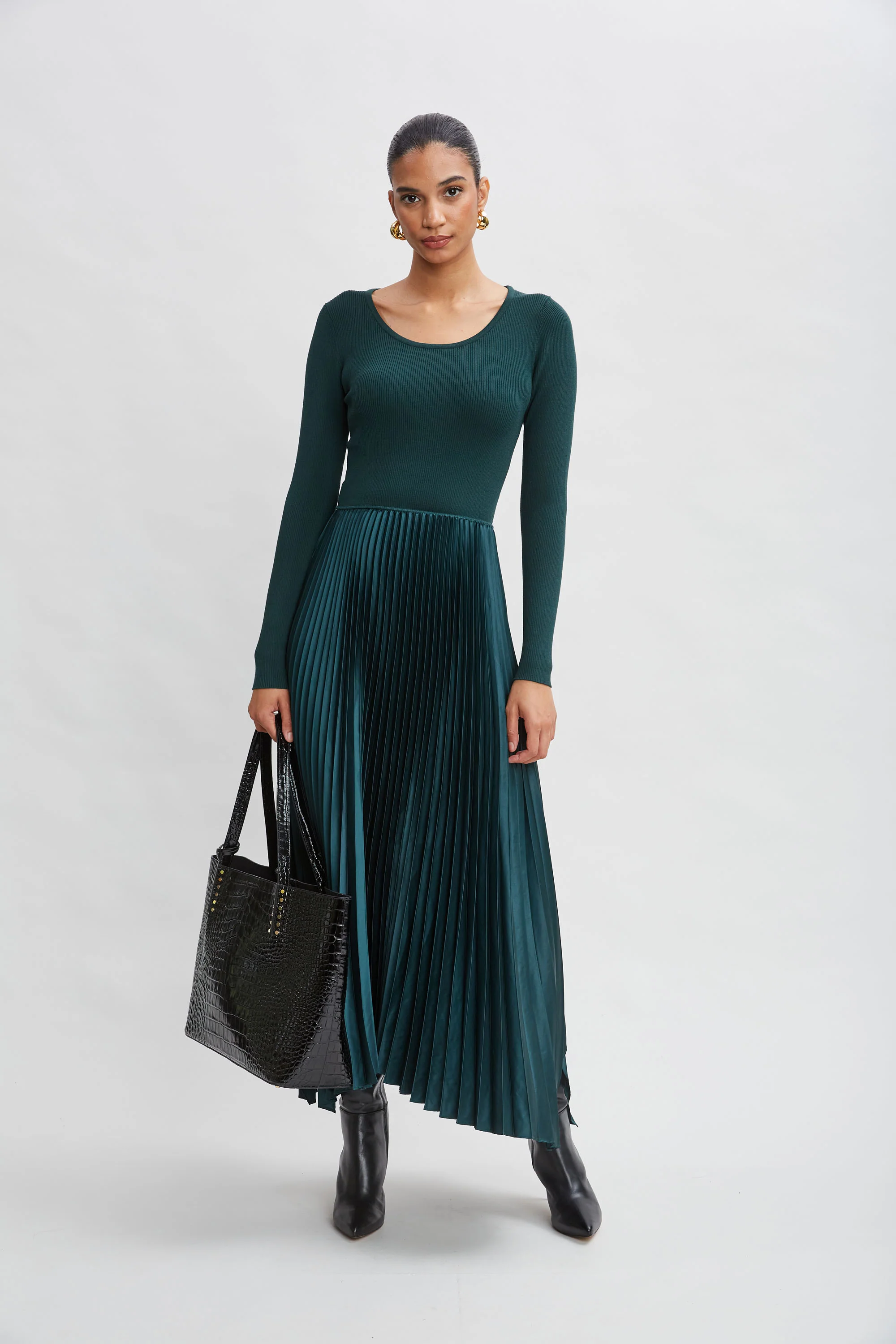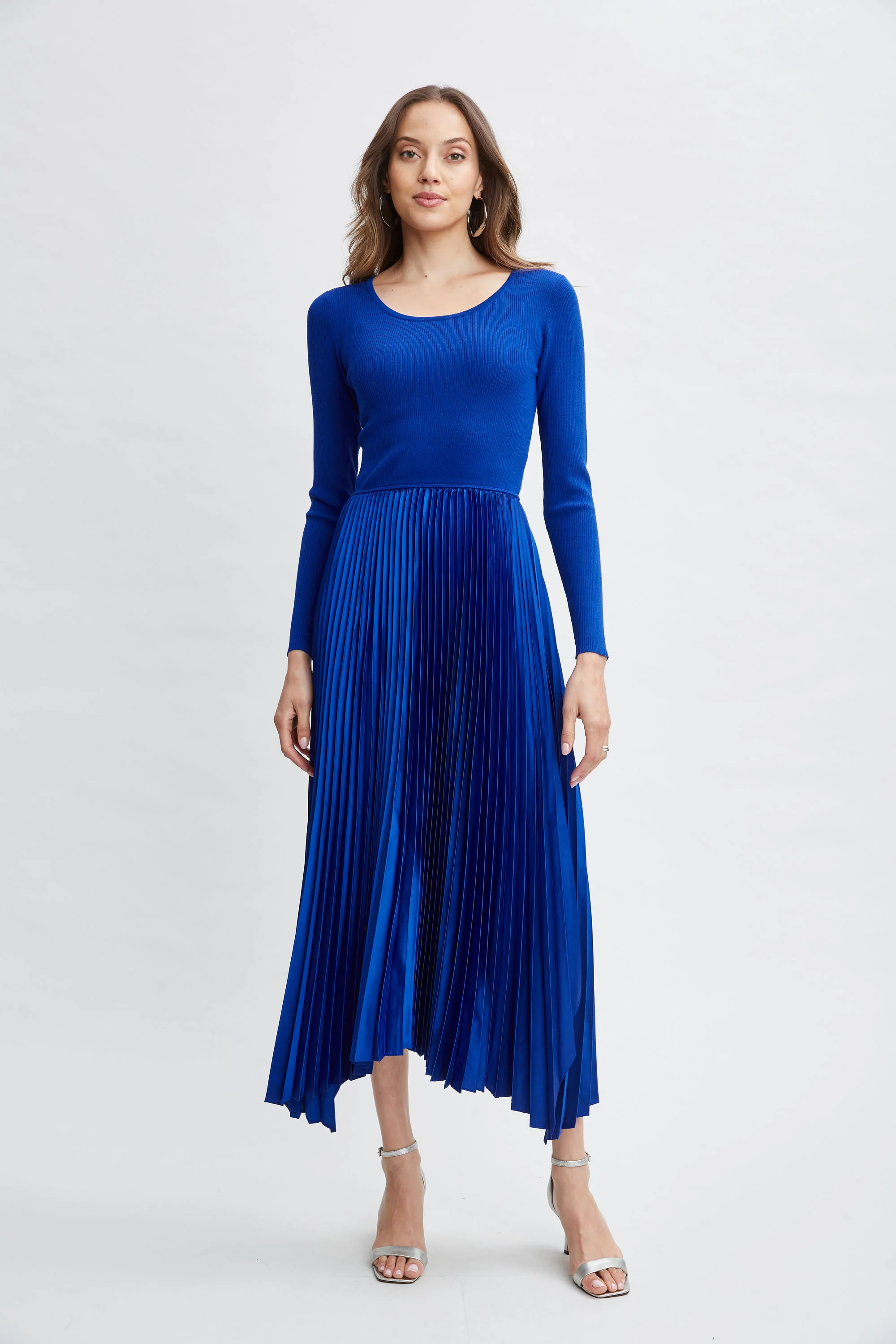 Long Sleeve Knit Pleated Dress