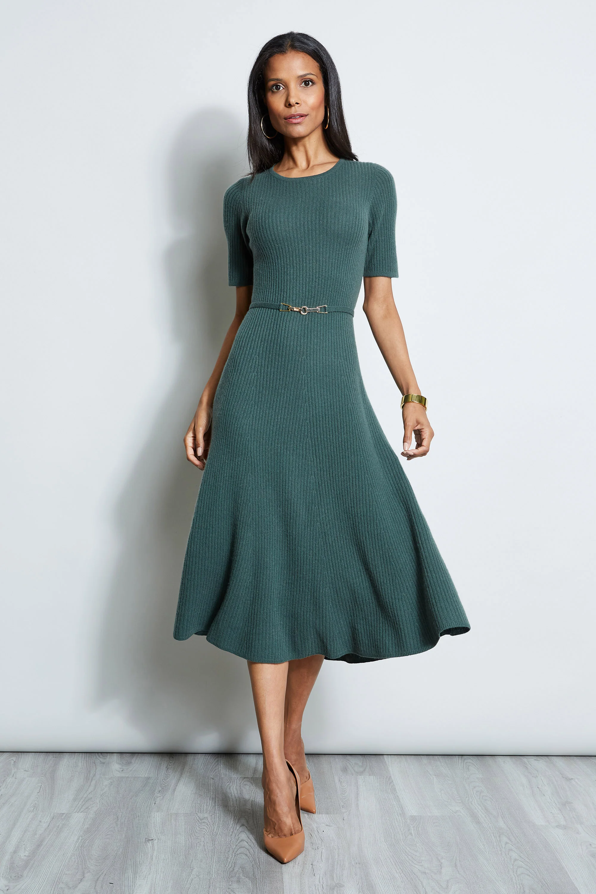 Short Sleeve Cashmere Belted Dress