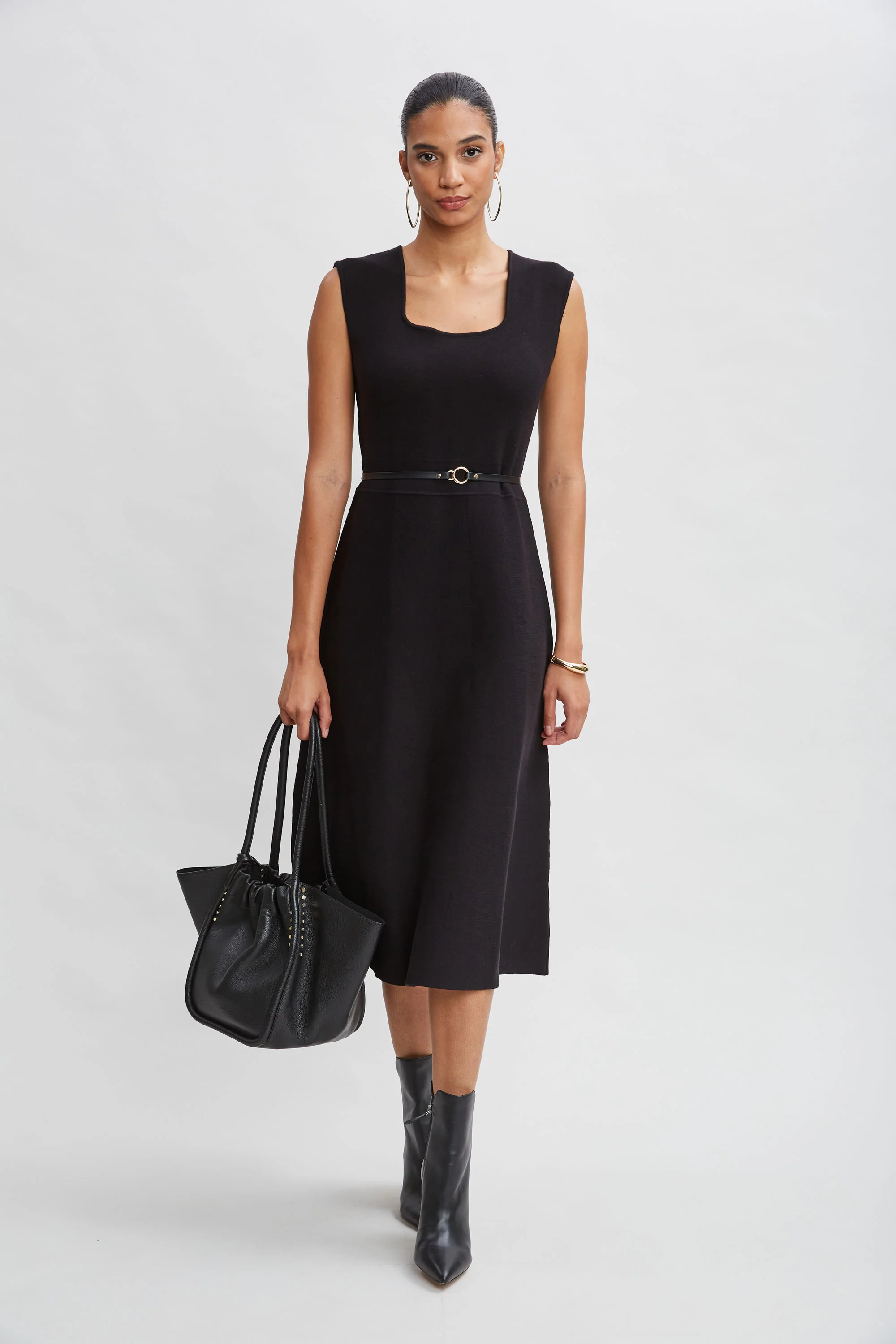 Square Neck Belted Sweater Dress