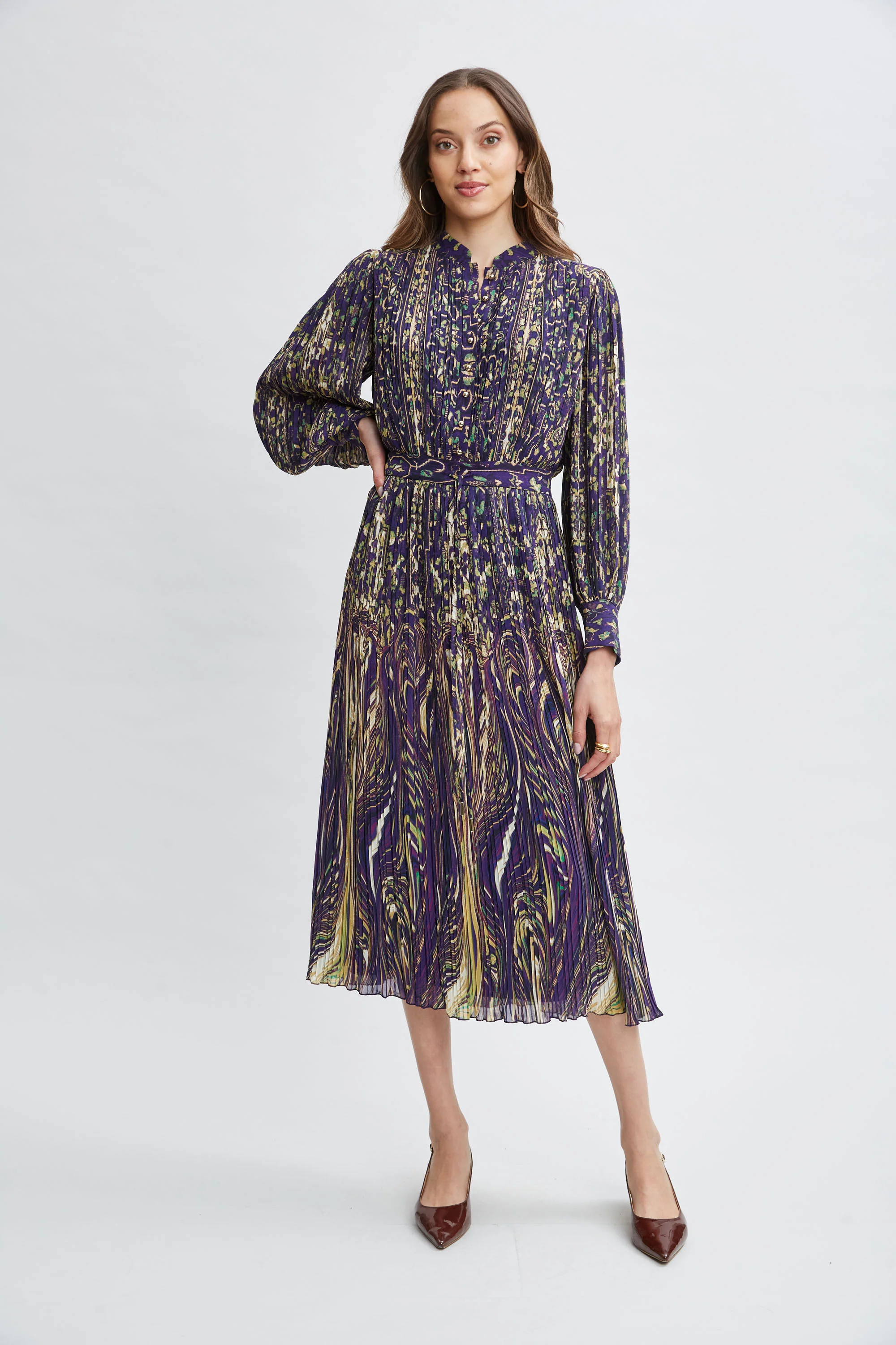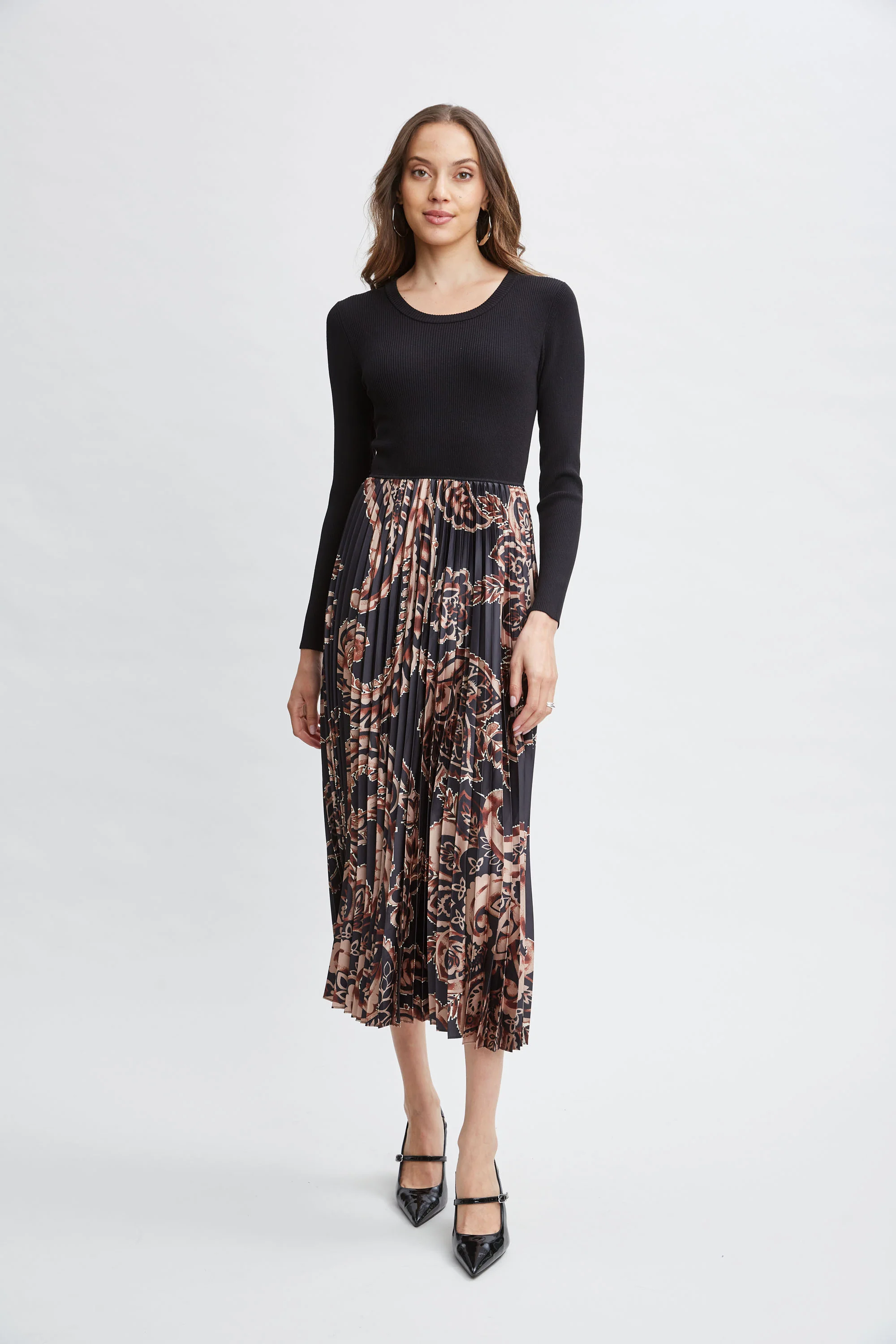 Paisley Pleated Midi Dress