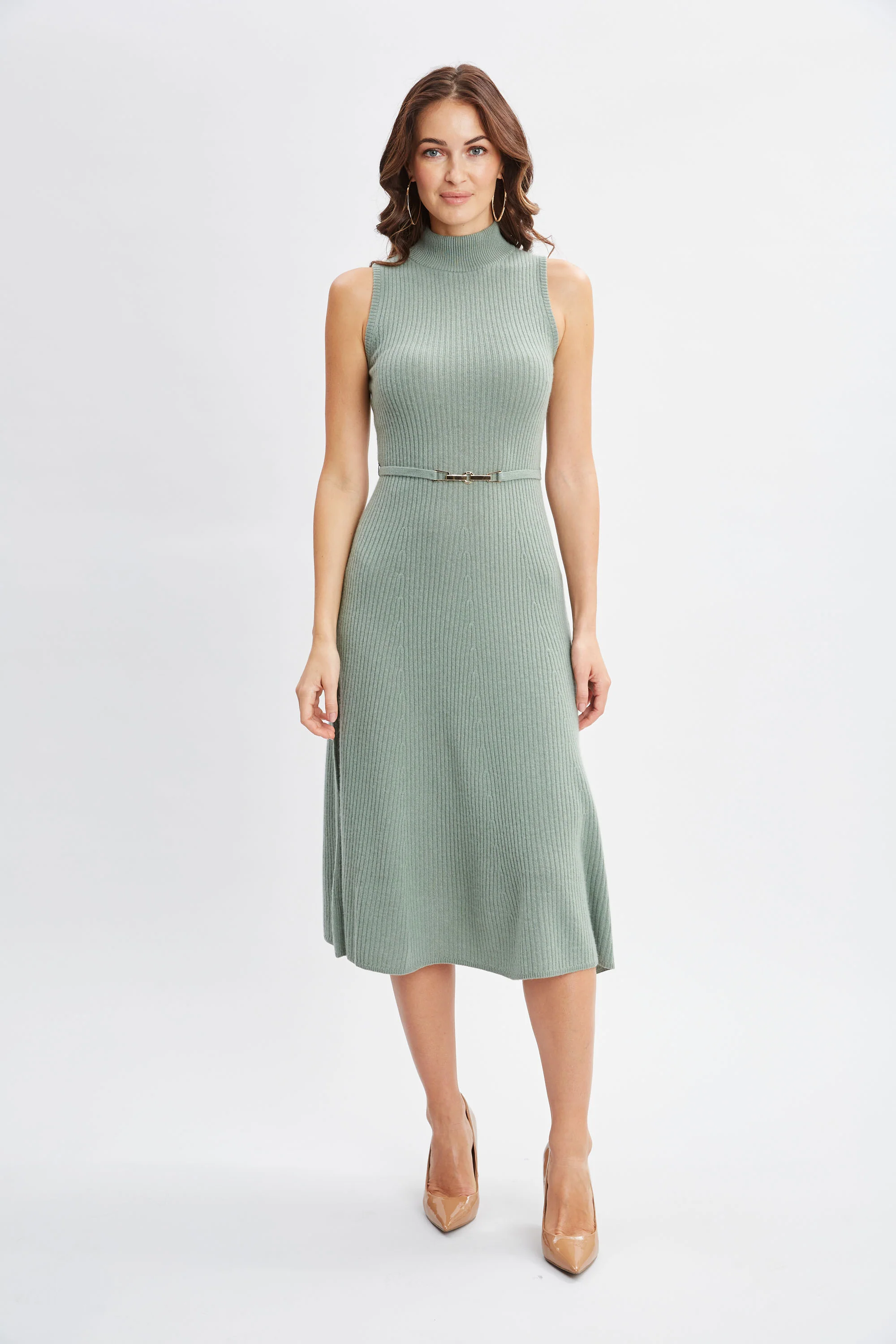 Sleeveless Cashmere Belted Dress