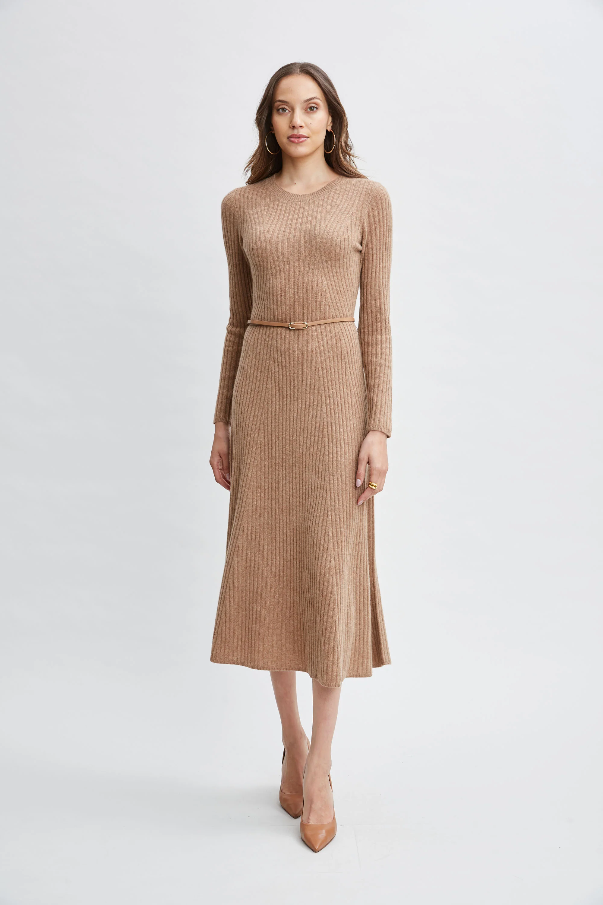 Cashmere Long Sleeve Belted Dress