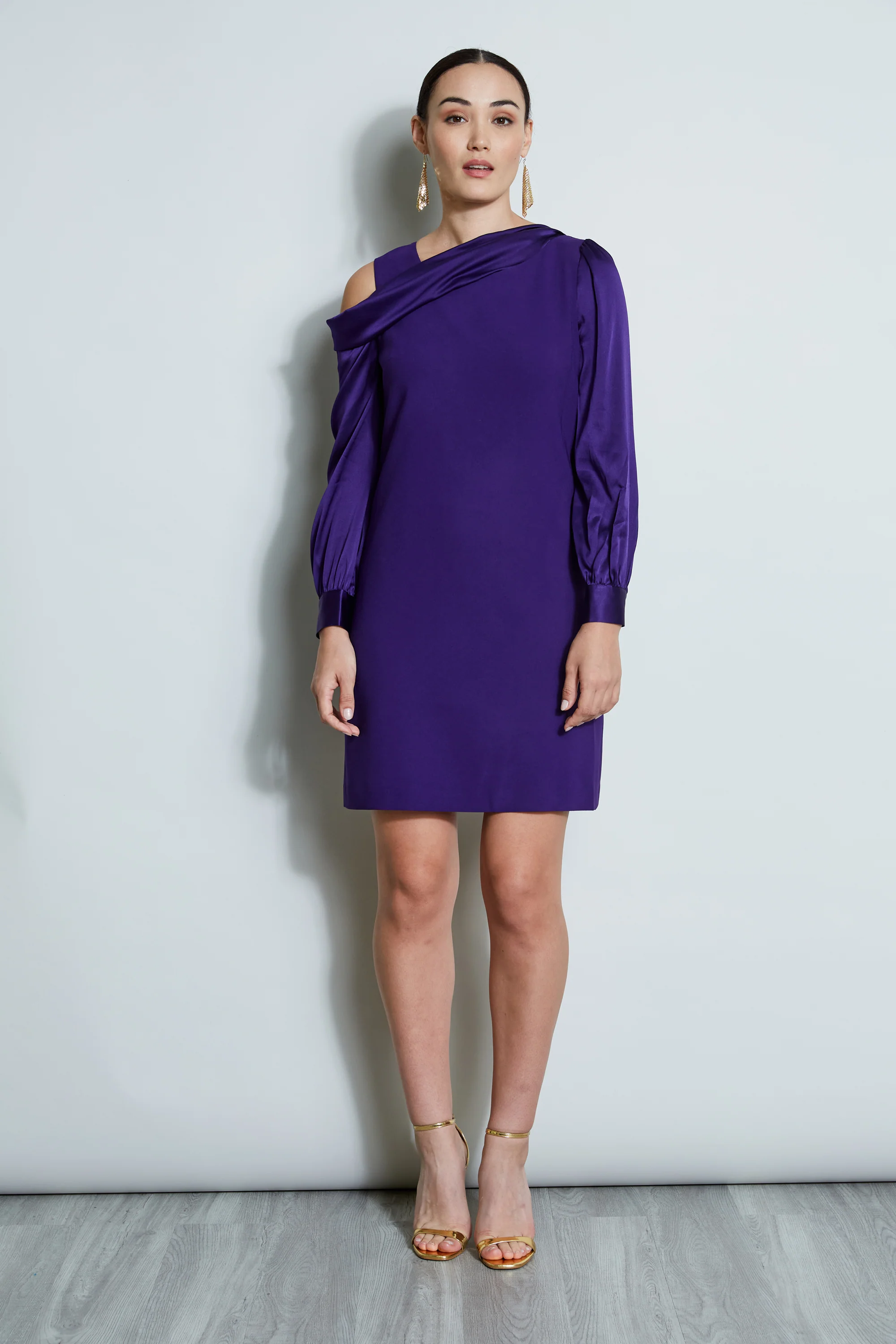 Draped Satin Shoulder Dress
